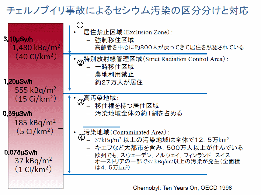 【1986年4月26日のチェルノブイリ原発4号炉事故による汚染地図】 エリア拡大図 |