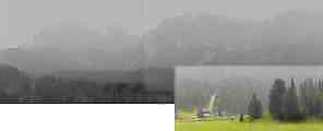 <コルチナ・ダンペッツォの街を散策します。雨の・霧の中のHi-8ビデオは残念ながらきれいではありませんね・・・>