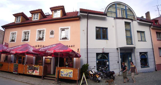 宿●2:チェコ:Moraviaモラヴィア/モラヴァ地方:Bohemiaボヘミア/チェヒ地方の境Telcテルチ: <HOTEL Pangea(☆☆☆)> ・2006年6月14-15日、2連泊利用。世界遺産の城の北入口。ボヘミア(エルベ流域):モラビア(ドナウ流域)分水嶺を回る基点に。