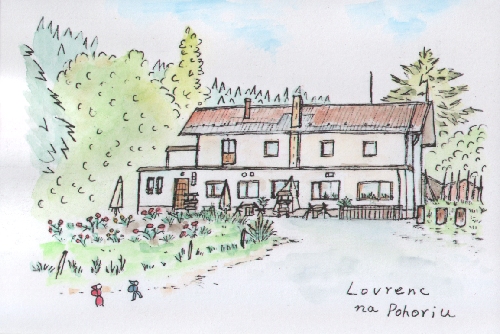 ●ロヴレンツェ・ナ・ポホリュ村 なんども来たことのあるオーストリア その隣の国にちょっと足を踏み入れようとしても 今通った国境検問の厳しさ 旅人はこのスロヴェニアという国に はじめて足を踏み入れたのです 太陽もすでに傾いているのに ガストハウスには泊まれないよ と さっきの村で聞かされ 驚き 峠への道はますます狭くなっていき 旅人の不安は大きくなっていきます そしてやっと 一軒しかないというペンションに 今到着したのです |
