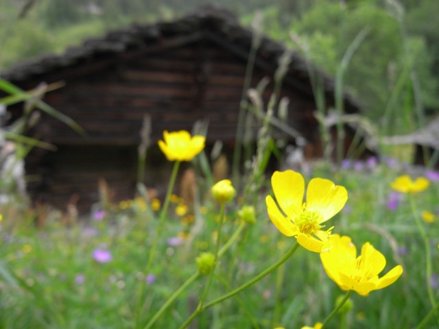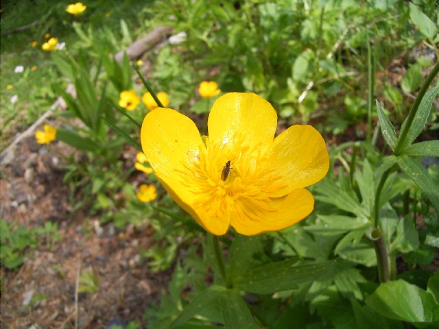 | Ranunculus acris ランヌクルス・アクリス (スイスPG:p114、花訪:p74、伊:P28) | ・根出葉は円形でロゼットに広がる。 ・葉身は3-5中・深裂し、裂片は成長するとさらに2-3裂。 ・葉に直立毛がある。 | ・多岐に分れ、茎に直立毛がある。 ・30-100cm | ・径2-3cm 大。 ・花弁は広倒卵形で表面は光沢がある。 | ![]() http://luirig.altervista.org/ |