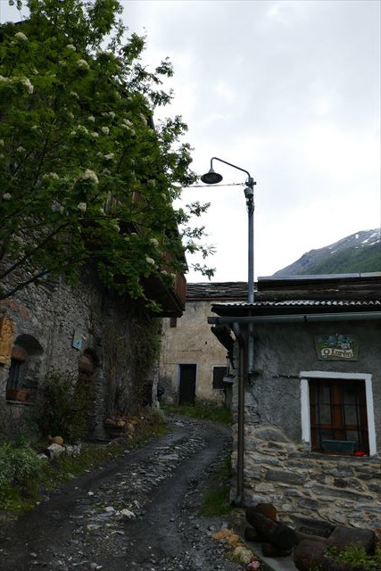 ・FrejusフレジュストンネルFrejusのイタリア側口脇から谷へ ・ロケモール村の先は未舗装。 ・ロケモール村の先は、Rochemollesダム湖(1930年代建設の重力ダム:1973m)、Ref.Scarfiotti山小屋(2156m)、Ref.Ambinアンビン山小屋(2991m)、Colle del Sommeiller(2993m)へ続く。 |