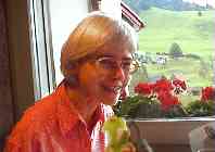 【Thunに住む老夫婦と話しながらの食事:2W単位で滞在し、2-3時間の歩き:今年の冬は6-10mの雪で大変だった:あそこに見える教会は宗派が違うのでそこへは行かない:日本は神社・寺・・・・・・