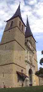 【ホーフキルヒェ教会は市の北東に・・・ゴシック様式の双塔です】