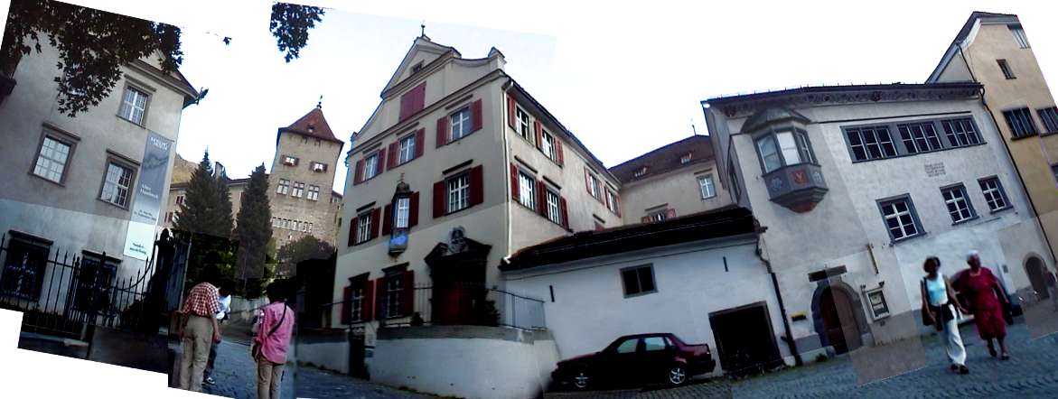 【左の建物はRatischesMuseumレート歴史博物館(map27:レーティシュ=レート・ロマンシュ語地域の展示物が一杯だそうです)、奥にさっき見えたBischofliches Schloss司祭館の塔Hof-Torturm(32)、その右にOberer Spaniolで1648年建造(31)が見えます。