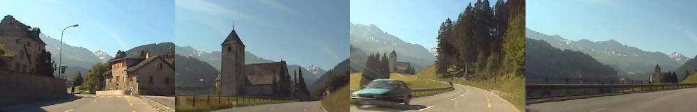 【前方に古い教会が近づいてきます。このChurwaldenクールヴァルデン付近から左(東)に見える2600m台の山の向こう側はアローザです。正面(南東)に目立って見える山はLenzerHornレンツァ・ホルン2906mでしょう】 ・・046.jpg