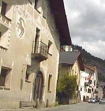 【Samedanサメダン、Bever(氷河特急はここで西に向かいます)を越えて・・・La Puntラ・プントの村から左にアルプラ峠に分岐します。エンガディンの石の壁画の家が並びます。1997年に泊まったZuozツオーツの村の隣村です。】 ・・46.jpg
