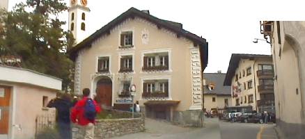 【Silvaplanaシルヴァプラーナに入りました・・・エンガディン特有の石の家、壁面の壁絵、アーチ状のカーブがあちこちに見えますね】 ・・61.jpg
