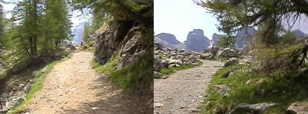 【今歩いてきた林の中の道を見下ろします。アロスからの氷河が、山の岩をこの渓谷に押し出し、時間が緑の大地に仕上げたのですね。今日は土曜日なので、子供を連れたハイカーもたくさん見かけます。】 1c3.jpg