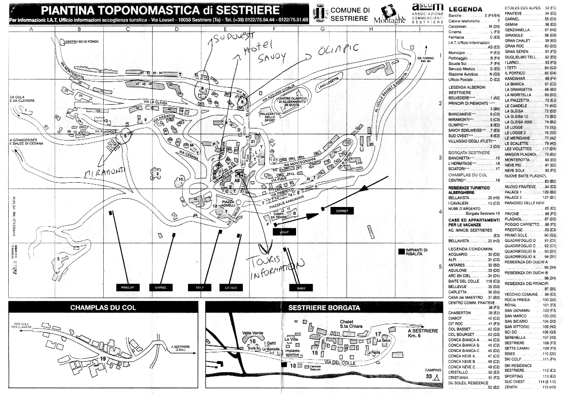 ●フィネスト峠〜セストリエレ峠ルートの不思議と魅力・・・ このColle-delle-Finestreフィネスト峠(2176m)と、Colle-di-Sestriereセストリエレ峠(2035m)の二つの峠は、僕にとっては疑問と興味がわく峠でした。RV社のEURO ATLAS(1/30万)地図の100の峠一覧表に、フィネスト峠が記載されていたのです。しかし地名からのIndexで見つからず、85ページもある全ページを升目を切って峠を塗りつぶし、ようやく見つけたところでした。地方道/林道レベルの道です。そして同時に見つけたのがセストリエレ峠で、こちらは国道レベルなのに一覧表に載っていないのです。 かつこの場所、フランス・イタリア国境からちょっと離れ、地形としても主要山系から離れた場所です。さらに時間をかけ、調べるにしたがい、フィネスト峠からセストリエレ峠にむかうルートに、2000mを越える複数の峠が連続していることで、きっと嶺の上を走っているルートだろうと・・・興味が一杯でした。 北東のSusaスーザから、 Colle-delle-Finestre(2176m)〜 Colle-dell-Assietta(2472m)〜 Colle-di-Lauson(2497m)〜 Colle-Blegier(2381m)〜 Colle-Costa-Piana(2313m)〜 Colle-Bourget(2299m)〜 Colle-Basset(2424m)〜 Colle-di-Sestriere(2035m) でセストリエレの村に到達するルートです。 |