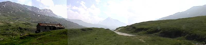 プティ・モン・スニ峠への道を。そして小屋付近から クラピエ峠方面を見ようと尾根に登っていきます。ここは大分水嶺・・・周りの雪山、どこもすばらしい眺めです。