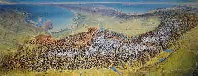 ・ドイツ上空からアルプスを鳥瞰した絵(幅1m*高60cm)。(Kompass社:オーストリアのビーラヘーエ峠/ジルブレッタ山岳道路で購入)