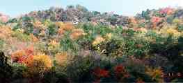 沿道はまだ紅葉にも黄葉にもやや早いのですが、色づいているのもありました。私の目にはやはり黄葉にみえました。木の上では赤く見えても地面に落ちると枯葉色なんですね。落ち葉も赤いのは、ツタ位でしょうか? (romeosierra2さんから:2000/10)