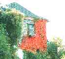 建物の壁のツタがもうすぐ真っ赤になりそうです。たしかにツタは紅葉しますね(kitamura:2000/9/30)・・・ツタの「紅」です