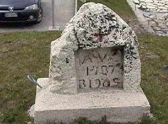 Comune-Colle-Santa-Lucia、San-Vito-di-Cadoreのふたつのカンバンは、この峠が行政区域の境なのでしょう。 馬が彫刻されているジァウ峠の門、この峠はコルチナからも近く、軍事目的などで大規模な馬の放牧が行われていたのでしょうか。