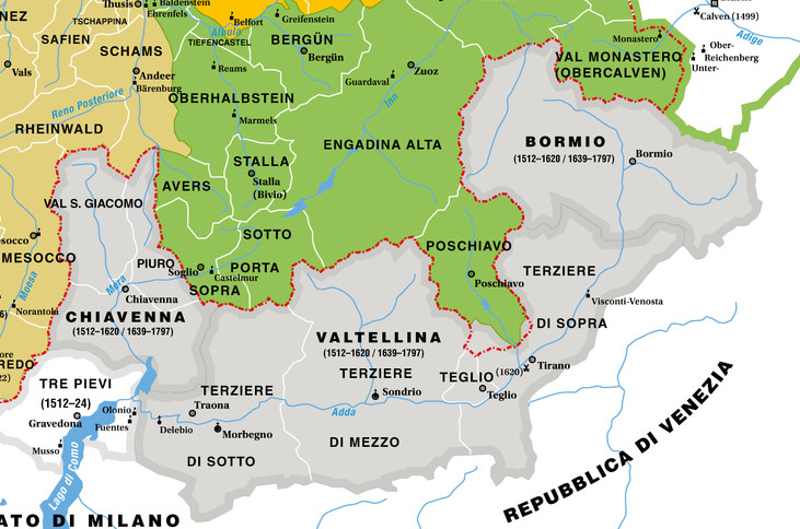 ・イタリア・ロンバルディア州・ソンドリア県のValtellinaヴァルテッリーナ(Bormio=リビーニョ付近、Valtellina=ソンドリオ付近、Chavenna=カヴェンナ付近)は、以前はミラノ公国に属していた。⇒1512年以降は現在のスイス・グラウビュンデン州と一体で、グラウビュンデンに属していた。その頃、ヴァルテッリーナはWesttirol(西ティロル)or Veltlinとも呼ばれていた。 ⇒1797年:ナポレオン配下でチサルピナ共和国の合流させられた。 ⇒1815年:ロンバルディ・ヴェネツィア王国⇒1859年:サルデーニャ王国⇒1861年:イタリア王国 ○http://www.eurovacanza.it/uk/destinazione.asp?destinazione=24【Livigno history:村は一度Walser人が居た】 ○http://www.gallisportcompany.it/_english/livigno/livigno_curiosita.cfm【自由エリアはどうやってできたのか】 ○http://www.ktt.com.pl/【Livigno-スキー地図】 ○http://www.alpineskimaps.com/italy/livigno/summap.htm【Livigno-ハイキング地図】 ○http://www.bergfuehrer.com/【リヴィーニョのMTBツアーガイド】 |
