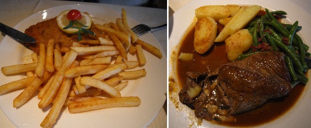 ![]() 【g083.jpg:2日目:手前:七面鳥・チーズクリームソースとヌードル、奥:サーロインステーキ・ペテルスブルグ風】 |