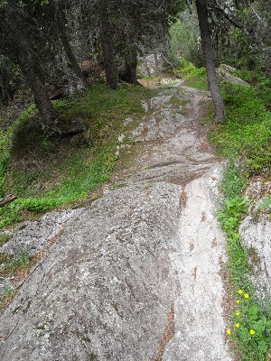 <翻訳:日本語> 古代ローマ街道遺跡”Malogin” 「Mologinマロヤ峠遺跡」の急斜面の階段は、1972年Sent.出身のArmon Planta氏が発見した。 ・紀元1世紀頃 ・車幅:107cm ・わだちの深さ:10〜15cm ・スロープ:25-30% |
