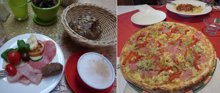 【Steirische Stub'n内部、宿の朝食、レストランのピザ】