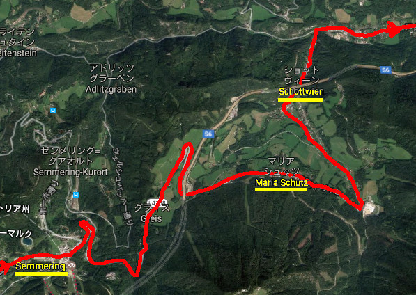 Semmeringセメリング峠(980m)〜Maria-Schutzマリア・シュッツ(760m)〜Schottwienショットヴィーン(569m)〜