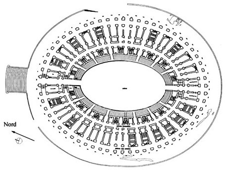 ●円形闘技場 (Les Arenes/Colosseum)・古代名:Arelato ・古代ローマ時代のアンフィテアトルムの一つで、1世紀末頃に建造された。 ・当時は3層構造で2万人を収容できたとされるが、現存するのは2層のみで、最上層は失われている。それでも、アルルに現存する古代ローマ遺跡の中では最大のもの。⇒クリックで拡大 ○https://ja.wikipedia.org/【アルル:歴史など】 ○https://ja.wikipedia.org/【ユネスコ世界遺産:アルルのローマ遺跡とロマネスク様式建造物群】 ○https://ja.wikipedia.org/【コロッセオ】 ○https://arenes-arles.com/【】 ○http://stephdelarue.chez-alice.fr/【アルル円形闘技場の構造など】 ○https://www.photosetbalades.fr/【アルルの古代建築・歴史など】 ○https://www.carto.net/【古代アルル博物館】 |